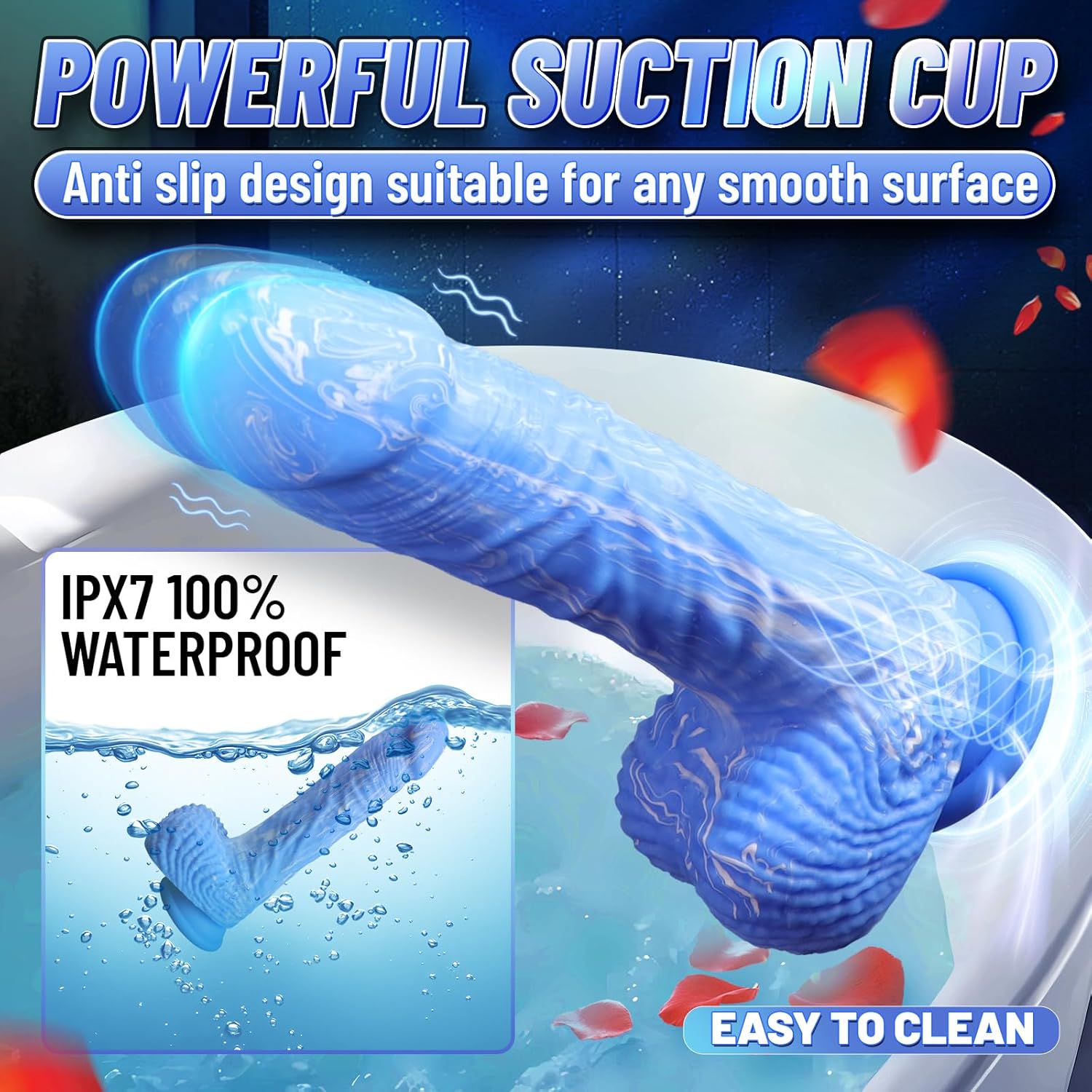 【IPX7 FULL WATERPROOF】 This premium female silicone dildo vibrator is made of medical-grade liquid silicone: skin-friendly, non-irritating, with soft, flexible, lifelike touch.