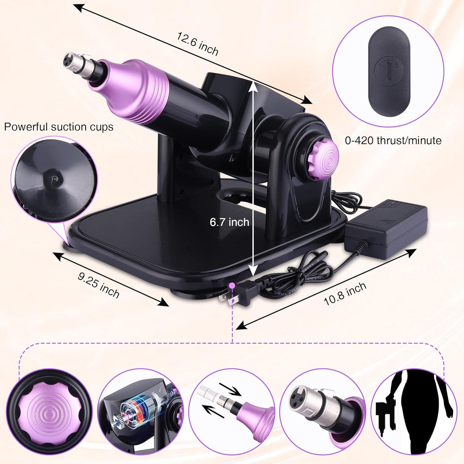 Multiple Positions: The dildo machine works in a variety of ways, with multiple adjustable angles. The automatic love machine can be inserted 0 – 420 times per minute.