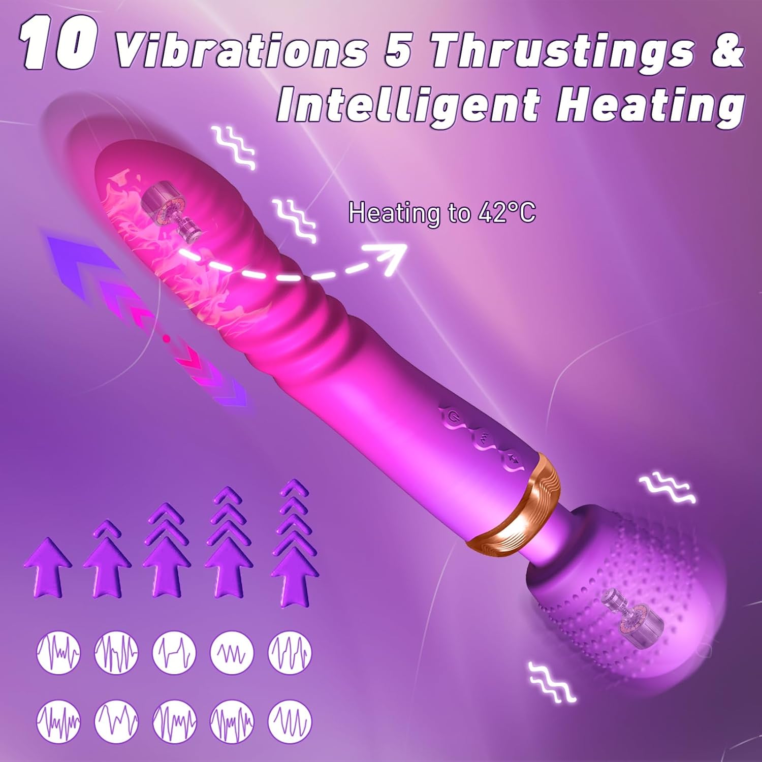 【10 Vibrators 5 Thrusting’s & Intelligent Heating】 The juglets sexuales are equipped with a vibration motor at the head and tail, plus a telescopic motor and Intelligent heating(42℃) module at the thrusting end.