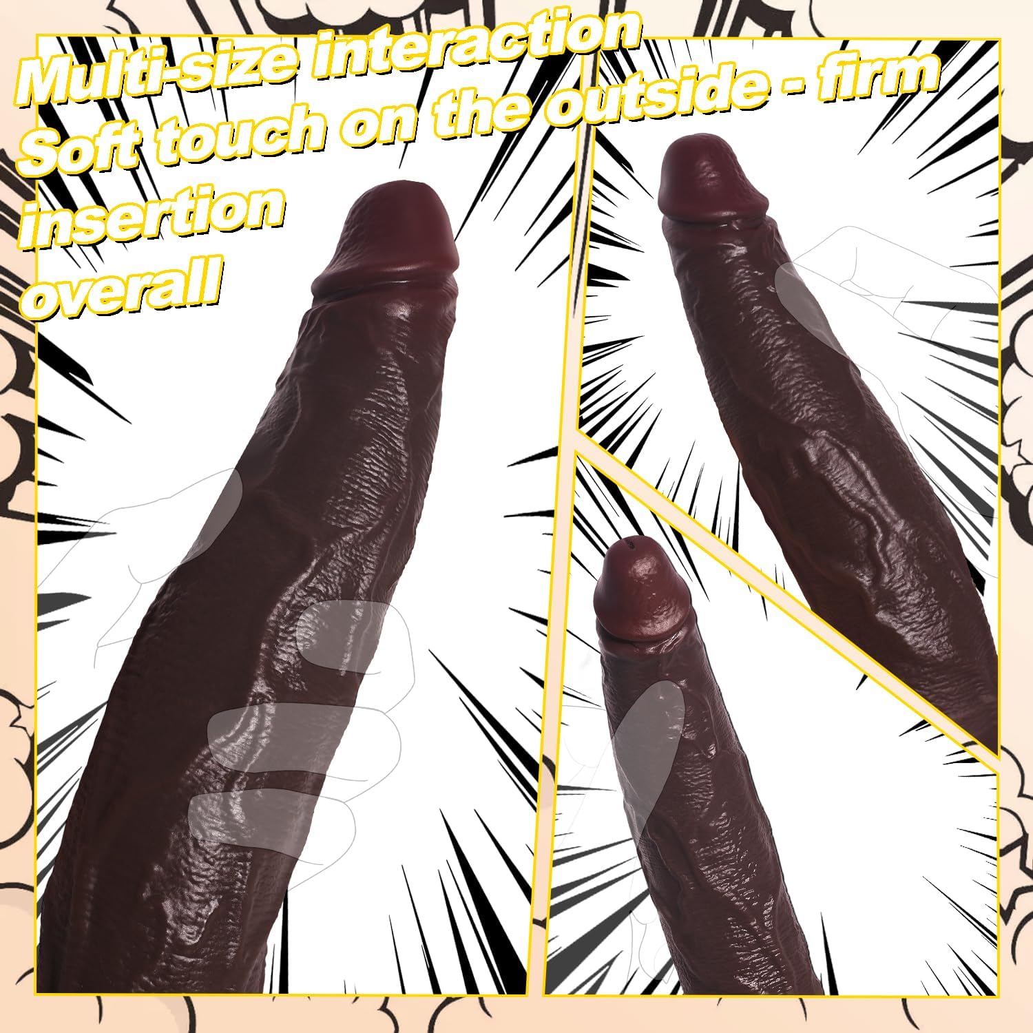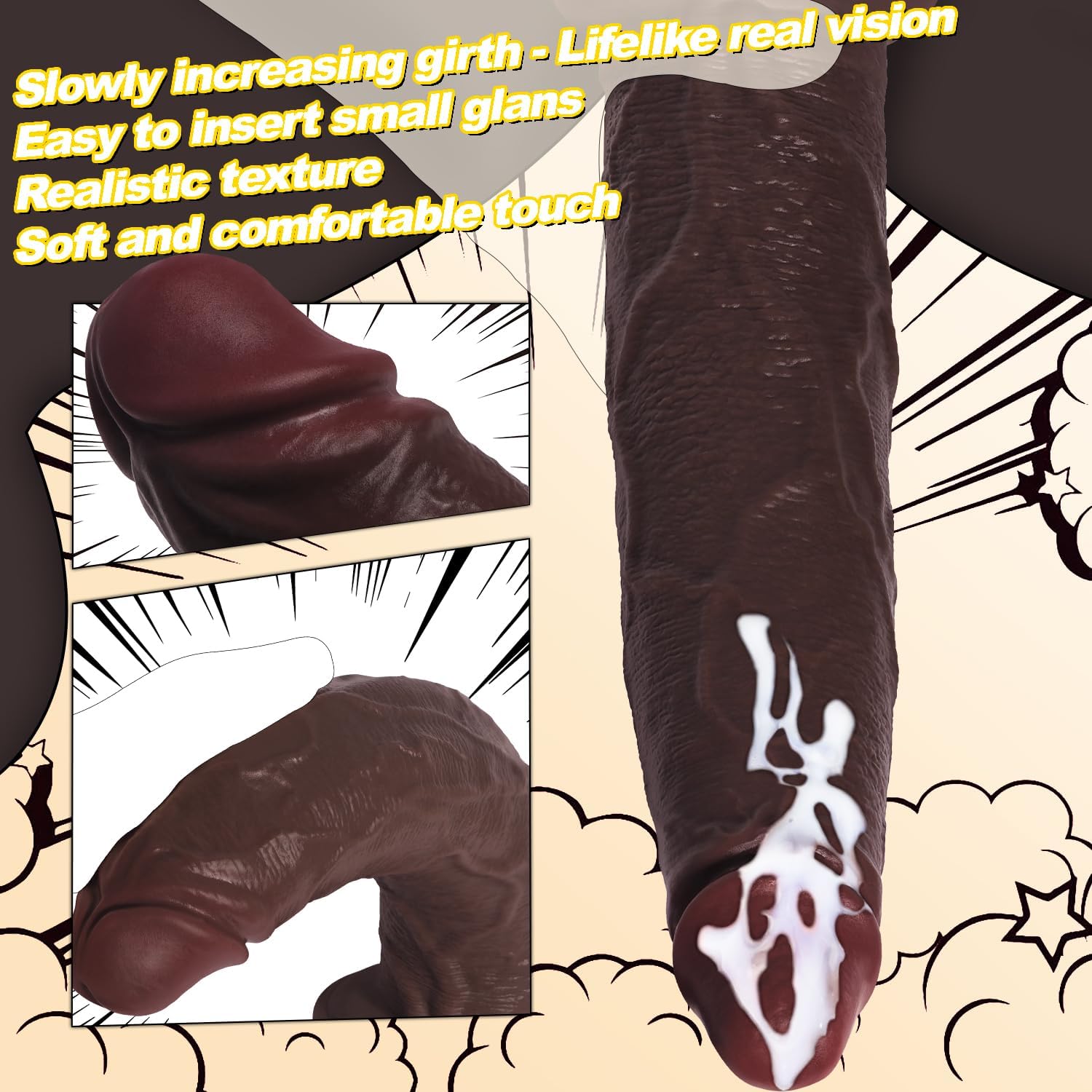【Beginners – Advanced】 Three realistic sizes that can be gradually expanded – suitable for beginners to advanced players. The small glans are especially suitable for anal or vaginal enhancement.