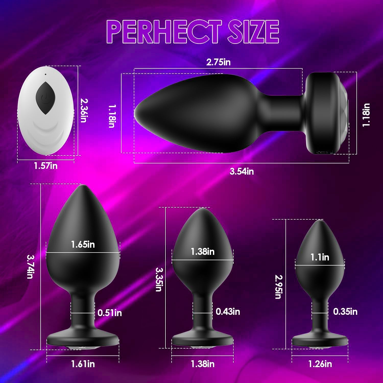 【4PCS Vibrating Butt Plug 】:1PCS remote control vibrating butt plug, other 3PCS silicone butt plugs (Without remote control and vibration function),This anal toy combines a prostate massager, anal vibrators in one. This prostate massagers quickly finds and hits your P-spot.