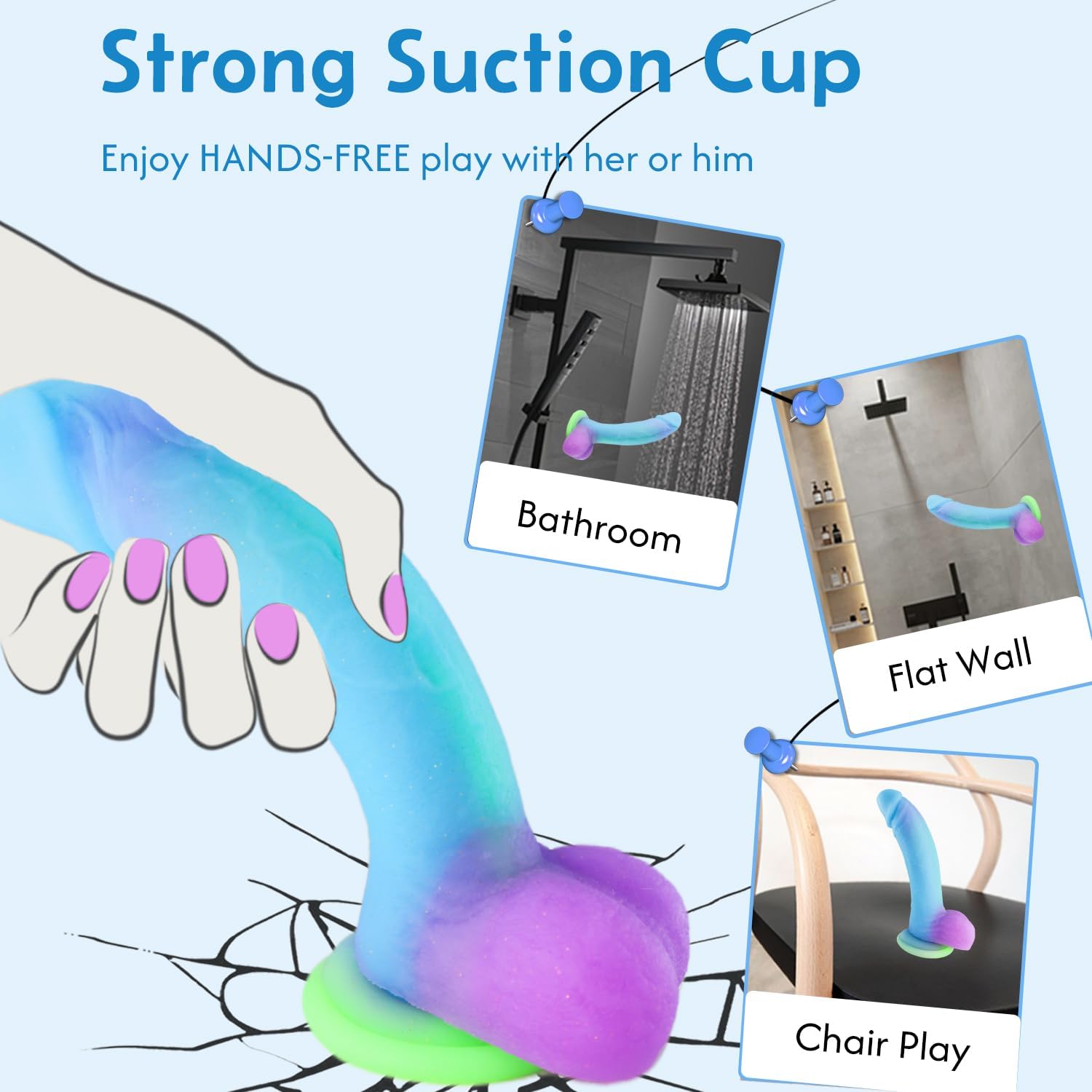 Versatile usage: with a strong suction cup base of this adult sex toy, you can stick it on any flat surfaces at will. In this way, you can adjust the angle at will to make the internal stimulus.