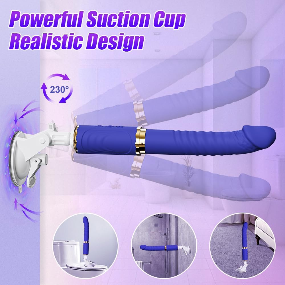 【Realistic Dildo & Unique Sex Machine】 This thrusting vibrator features dual motors that deliver powerful yet smooth vibrations, keeping your desires ignited. The ergonomic handle design combined with lifelike vein.